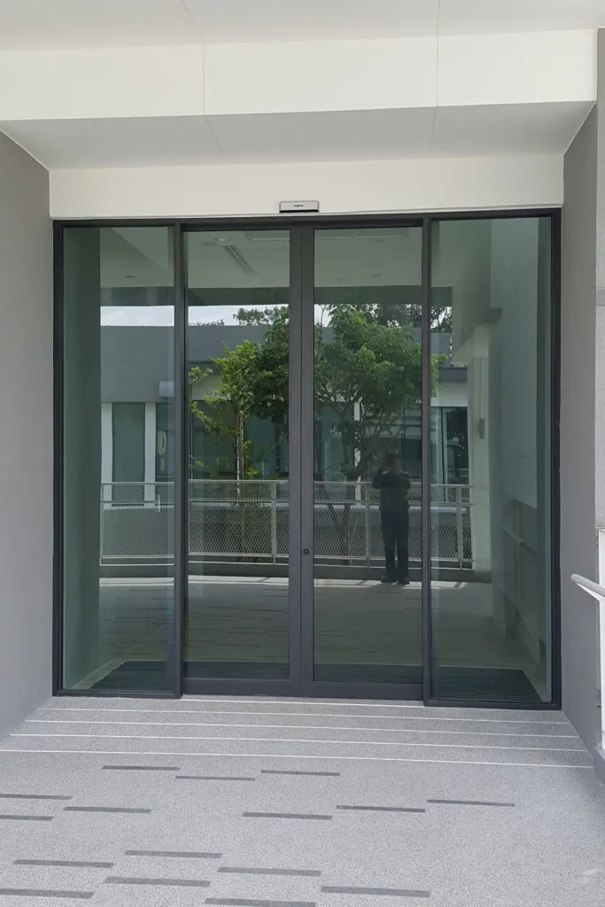 ประตูบานเลื่อนอัตโนมัติ เป็นระบบที่ได้ความนิยมมากที่สุด บานจะเคลื่อนไปตามแนวผนังให้ความสะดวกต่อผู้ใช้งาน ดูแลรักษาง่าย มีระบบความปลอดภัยหลายรูปแบบ