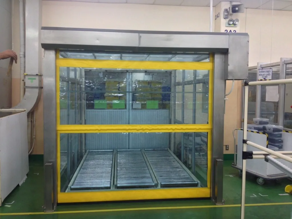 ประตูอัตโนมัติแบบม้วนขึ้นเป็นนวัตกรรมและเทคโนโลยีใหม่ ควบคุมด้วยระบบ Programmable Logic Controller ทำงานรวดเร็ว เงียบ แม่นยำ ทนทาน เหมาะสำหรับใช้ ในโรงงาน ซึ่งจะช่วยป้องกันฝุ่น แมลง ลม และควบคุมอุณหภูมิ